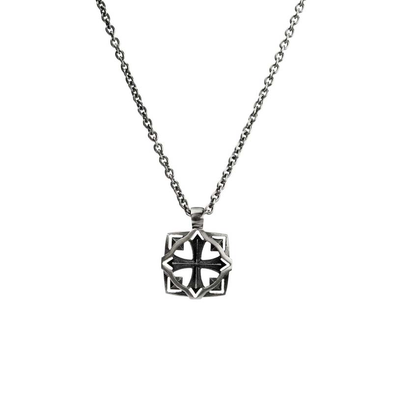 Komea miesten kaulakoru. Lumoavan keskikokoinen Soturi riipus on valmistettu nikkelivapaasta sterling-hopeasta ja se on oksidoitu, jotta siihen on saatu tyylikäs tumma pinta. Koruosassa yhdistyvät erilaiset neliömuodot ja näiden lisäksi on koruosan keskellä nähtävissä ristin muoto. Tämän riipuksen ketjun pituus on säädettävä 50/55 cm. Tämä rouhea riipus sopii arkikoruksi miehelle ikään katsomatta. Soturi riipus sopii myös rippiristiksi!