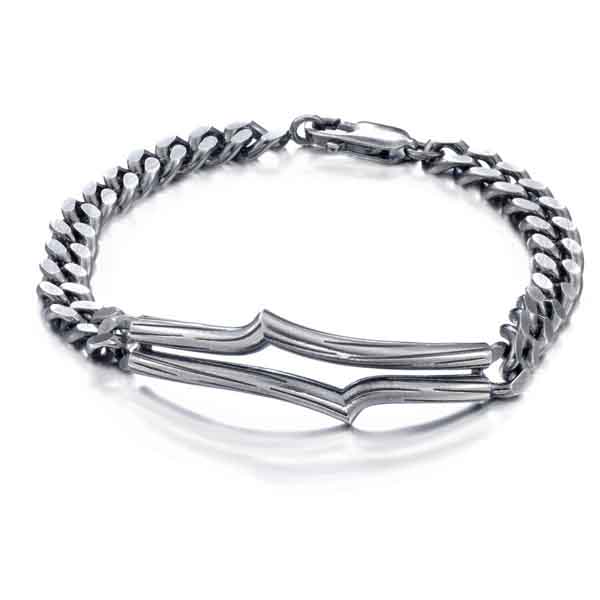 Miesten Lumoava Vaellus hopeinen rannekoru. Tämä rannekoru on valmistettu laadukkaasta sterling-hopeasta. Koruosan koko on 54 x 13 mm ja muotoilu on saanut inspiraationsa järven pinnasta heijastuvasta tunturista. Rannekorun ketjun pituus on valittavissa kahdesta koosta: 19,5cm ja 21cm. Vaellus rannekoru on luonnon ystävän luottokoru!