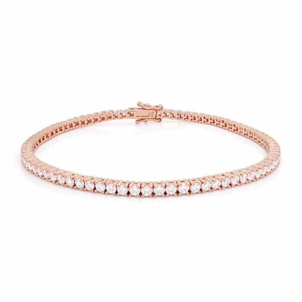 Naisten ruusukullattu hopearannekoru kirkkailla zirkonia-korukivillä. Tätä klassisen kaunista rannekorua koristaa rivi säihkyviä korukiviä. Ketjun pituus on 17 cm. Rannekorussa on niveliä, eli se ei ole täysin jäykkä. Rannekorun materiaali on laadukas nikkelitön 925 sterling-hopea.