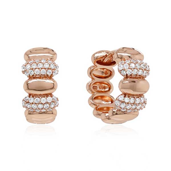 Nämä kauniit hopeiset ruusukullatut korvakoruhelat on koristeltu säihkyvillä Swarovskin kristalleilla. Helat ovat käännettävät ja sopivat yhteen rengaskorvakorujen kanssa, joista ne voivat...