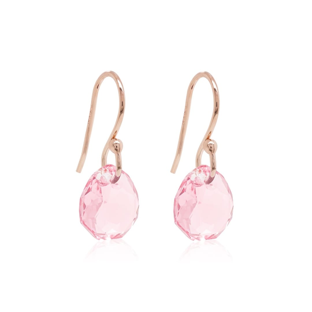 Naisten hopeiset korvakorut vaaleanpunaisilla kristalleilla. Korvakorut on ruusukullattu ja niissä on koukkukiinnitys. Korvakorujen materiaali on laadukas nikkelitön 925 sterling-hopea.