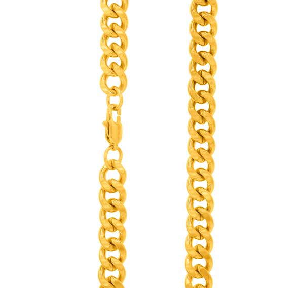Leveä kultadublee panssariketju miehelle. Teräspanssariketjun leveys on 10 mm ja se on valmistettu kestävästä ruostumattomasta teräksestä. Pituus on valittavissa, 50 tai 55 cm.