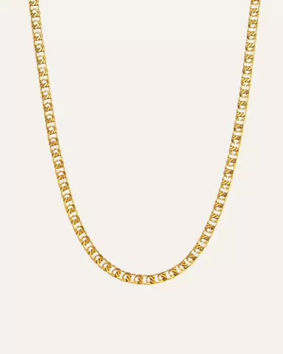 Mockberg Infinity Necklace on klassinen ja ajaton kaulakoru, jossa on tyylikäs curb chain -ketju (panssariketju). Koru on valmistettu laadukkaasta ruostumattomasta teräksestä ja päällystetty ylellisellä 18 karaatin kultaisella PVD-pinnoitteella. Kestävät materiaalit varmistavat, että kaulakoru säilyttää kauniin värinsä ja kiiltonsa pitkään. Helposti irrotettavan pidennysketjun ansiosta voit räätälöidä korun pituuden juuri itsellesi sopivaksi.