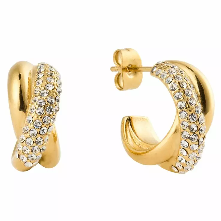 Mockberg x Kenza Aurora kullatut korvarenkaat. Kullatut rengaskorvakorut on valmistettu laadukkaasta ruostumattomasta teräksestä, ja niitä koristavat kirkkaat Preciosa-kristallit. Korvakoruissa on tukeva tappikiinnitys. Korvakorun koko on 16 mm.