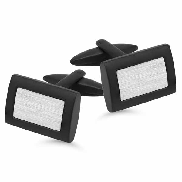 Miesten teräksiset kalvosinnapit. Näistä mustista kalvosinnapeista löytyvät keskeltä harjatut teräksiset yksityiskohdat. Kalvosinnapit on valmistettu ruostumattomasta teräksestä. Teräskalvosinnappien leveys on 18 mm ja korkeus 12 mm. Nämä kalvosinnapit ovat tyylikäs valinta!