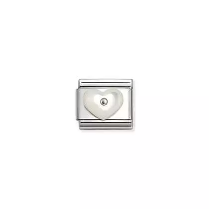 Nomination Classic sarjan helmiäis-sydänpala. Tämä kaunis sydän sopii koristamaan monenlaista Nomination-ranneketta!