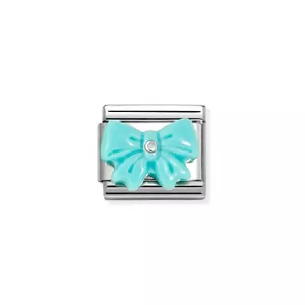 Nomination Classic sarjan turkoosi rusetti-pala. Koruosassa on synteettinen kivi sekä 925 sterling-hopeaa. Sopii koristamaan monenlaista Nomination-ranneketta!