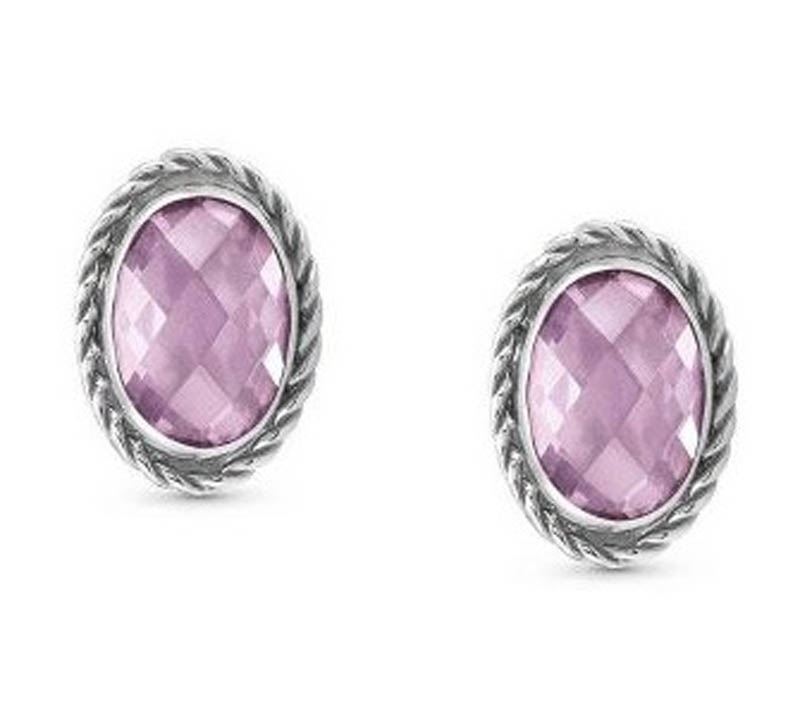 Nomination Hopeakorvakorut Vaaleanpunainen 027801/003. Tappikiinnitys, ovaalinmuotoiset roosanväriset kivet. Materiaalina 925 sterling-hopea ja ruostumaton teräs. Koko 9 x 7 mm.