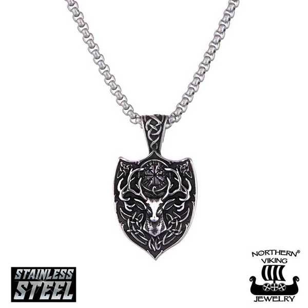 316L-teräksestä valmistettu Northern Viking Jewelry®-Riipus "Vegvisir Shield".