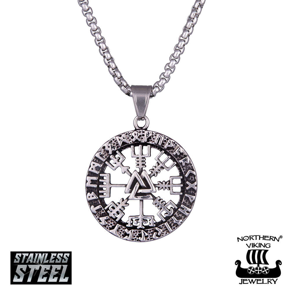 316L-teräksestä valmistettu Kaulakoru Northern Viking Jewelry "Vegvisir Valknut"