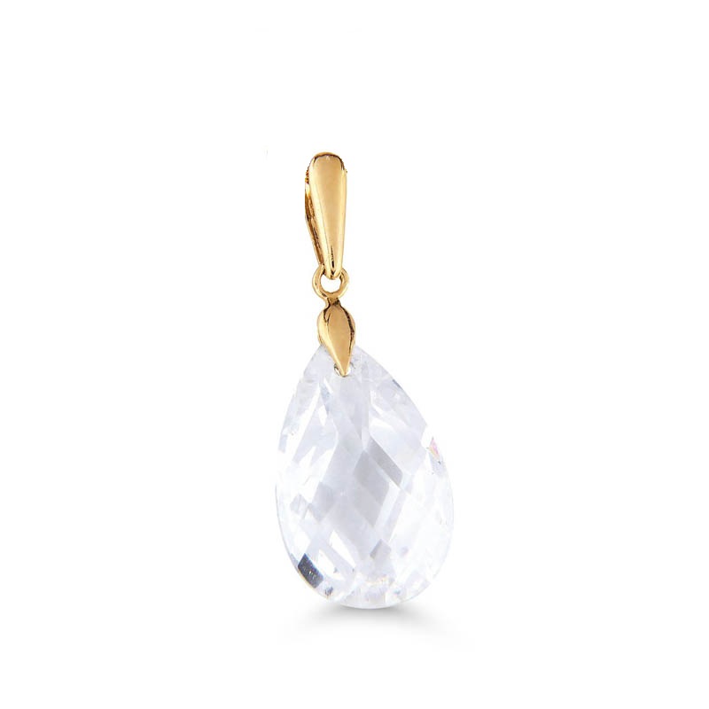 Kaunis naisten kultariipus on valmistettu 14 karaatin keltakullasta. Riipuksen kruununa on näyttävä viistehiottu pisaranmuotoinen zirkoniakivi. Viistehionta saa korun heijastamaan valoa todella kauniisti! Koru on 23 mm korkea ja 9 mm leveä. Huomaathan, että tämä riipus ei sisällä ketjua.