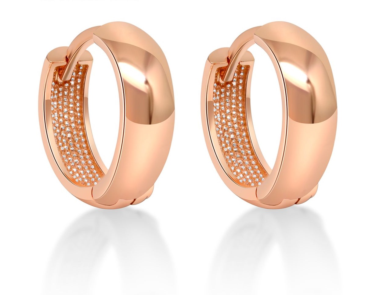 Tyylikkäät lämpimän ruusukullan sävyiset rengaskorvakorut saranamekanismilla. Nämä 925 sterlinghopeasta valmistetut korvakorut sopivat niin arkeen kuin juhlaan!