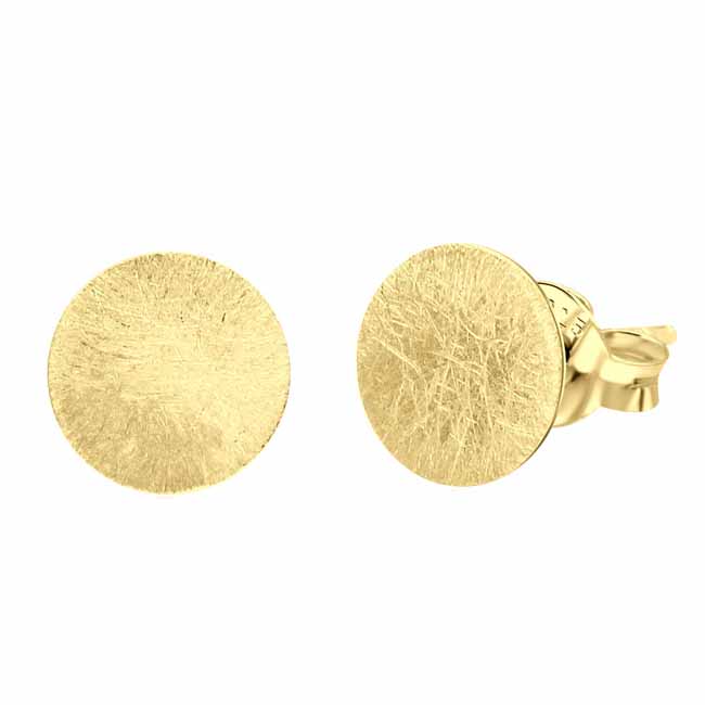 Keltakullansävyiset hopeiset pyöreät korvakorut. Korvakoruissa on luotettava tappikiinnitys. Korvakorujen koko on 8 mm ja paksuus noin 1 mm. Korvakorun pinta on "naarmutettu" eli se heijastelee eri tavoin riippuen valon suunnasta. Sirot ja kevyet nappikorvakorut, joita voi käyttää arjessa! Korvakorujen valmistusmateriaali on laadukas nikkelitön 925 sterling hopea.