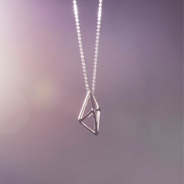 Naisten geometrinen ja vankkarakenteinen hopeariipus. Kide-korun muodossa etsitään tasapainoista epäsymmetriaa, ja myös tyhjä tila on tärkeä osa muotoa. Korulla ei ole nurjaa puolta, vaan se saa vapaasti liikkua käyttäjänsä liikkeiden mukana.