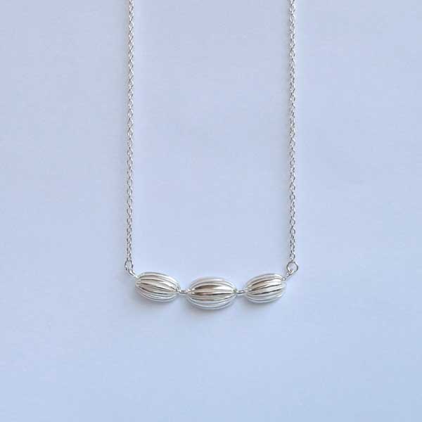 Elegantti naisten hopeakaulakoru 46 cm tai 50 cm pituisella hopeaketjulla. Merenneito-korusarjan koruissa yhdistyvät kiiltävät ja mattapintaiset hopeapinnat sekä pehmeä muotoilu. Upea 3-osainen hopeinen kaulakoru niin arkeen kuin juhlaan!