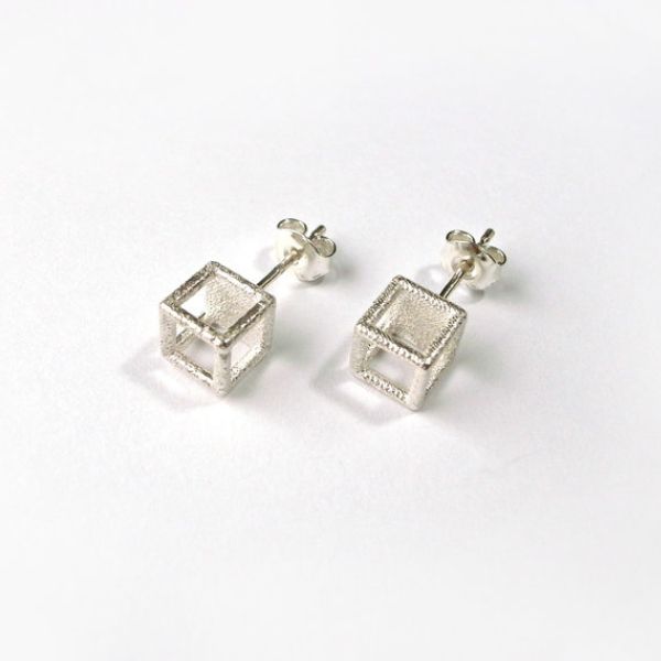 Naisten sirot hopeakorvakorut kauniilla ja vangitsevalla geometrisellä muodolla. Kuutiollinen-korusarja on saanut inspiraationsa timantin kuutiollisesta kiderakenteesta, ja sen lähtöajatuksena on ollut timantin matka maan uumenista valmiiseen koruun. Tässä korussa timantti on mukana vain ajatuksena.