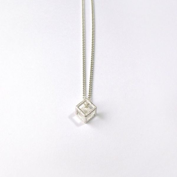 Naisten siro hopeariipus kauniilla ja vangitsevalla geometrisellä muodolla. Kuutiollinen-korusarja on saanut inspiraationsa timantin kuutiollisesta kiderakenteesta, ja sen lähtöajatuksena on ollut timantin matka maan uumenista valmiiseen koruun. Tässä korussa timantti on mukana vain ajatuksena.
