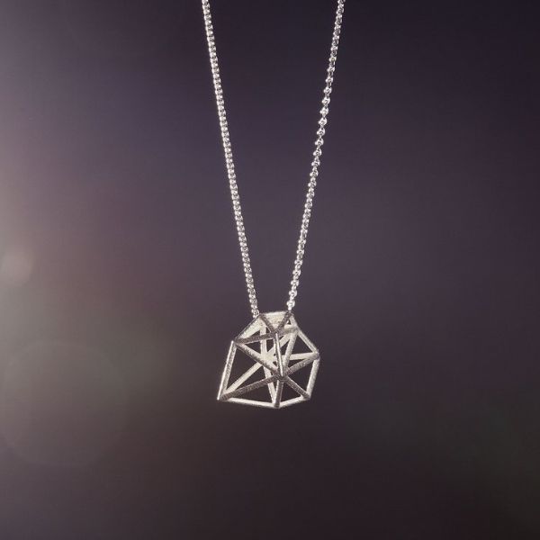 Geometrinen naisten hopeariipus kevyellä ja ilmavalla muotoilulla. Säde-koruun on vangittu ohikiitävä hetki valonsäteiden leikkiä, jossa valonsäteet leikkivät pimeässä varjojen kanssa, risteillen edes takaisin, vilkkuen ja välillä himmeten tai häikäisten. Kaulakorun ketjun pituus on valittavissa joko 50 tai 70 cm.