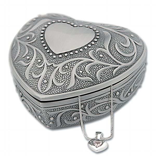 Kaunis sydämenmuotoinen korurasia. Rasian sisällä on tummansininen kangasverhoilu ja rasia on koristeltu ornamenttikuvioin. Rasian keskellä on sydän, johon voi kaivertaa haluamasi tekstin. Kaiverrettu tuote on ihana ja merkityksellinen lahja!