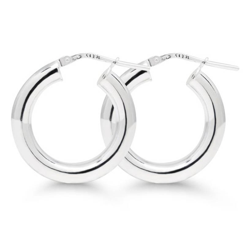 Klassiset hopeakorvarenkaat kiiltävällä ja sileällä pinnalla. Korvarenkaan halkaisija on 22 mm ja sen kiinnitysmekanismi on sarana. Klassikkoasuste, joka täydentää asun kuin asun!