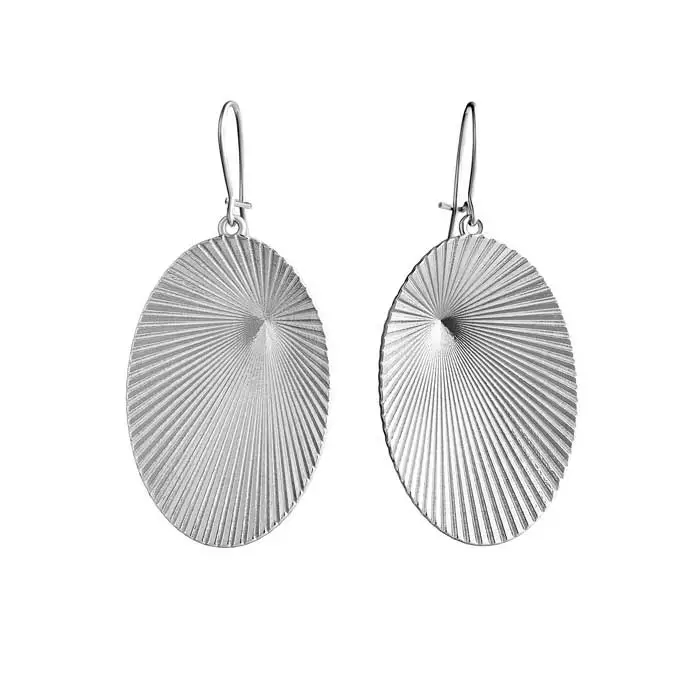Nämä Ritva-Liisa Pohjalaisen Sisin-sarjan näyttävät, roikkuvat korvakorut ovat kooltaan noin 25 x 38 mm. Niiden selkeä ja veistoksellinen muotoilu pääsee kauniisti oikeuksiinsa liikkeessä, ja se on saanut inspiraationsa sisäisestä voimasta ja tasapainosta. Korut on valmistettu laadukkaasta platinoidusta 925 sterling-hopeasta, jonka kirkkaan hohtava pinta heijastaa eläväisesti valoa. Korvakoruissa on turvallinen ja siro, lukollinen koukkukiinnitys.