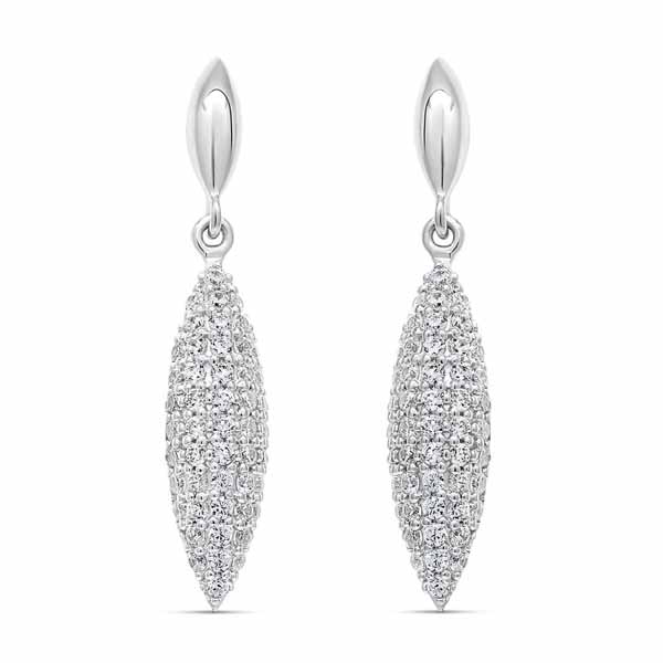 Hopeiset roikkuvat korvakorut zirkonia-korukivin koristeltuna. Korvakoru on kauniin soikion muotoinen. Korvakoruissa on tukeva tappikiinnitys. Materiaali on 925 sterling-hopea.