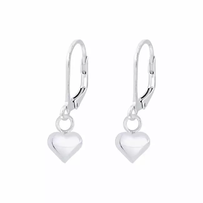 Roikkuvat hopeiset sydänkorvakorut. Siron korvakorun koko on 5 x 4 mm. Korvakoruissa on kätevä sankakiinnitys. Korvakorujen valmistusmateriaali on laadukas nikkelitön 925 sterling hopea.