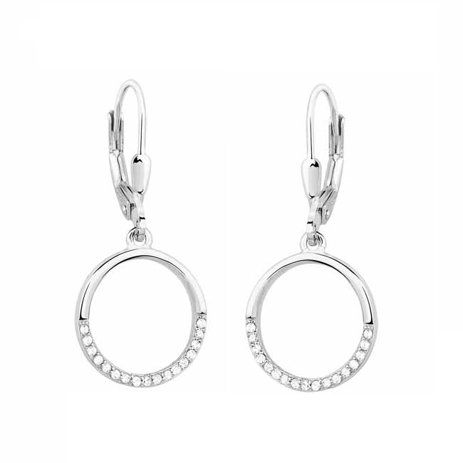 Hopeiset korvakorut roikkuvilla kehillä. Kehät on koristeltu puoliksi kirkkailla zirkonia-korukivillä. Korvakoruissa on kätevä sankakiinnitys. Korvakorujen koko on 14 mm. Sirot ja kevyet roikkuvat korvakorut, joita voi käyttää arjessa! Korvakorujen valmistusmateriaali on laadukas nikkelitön 925 sterling hopea.
