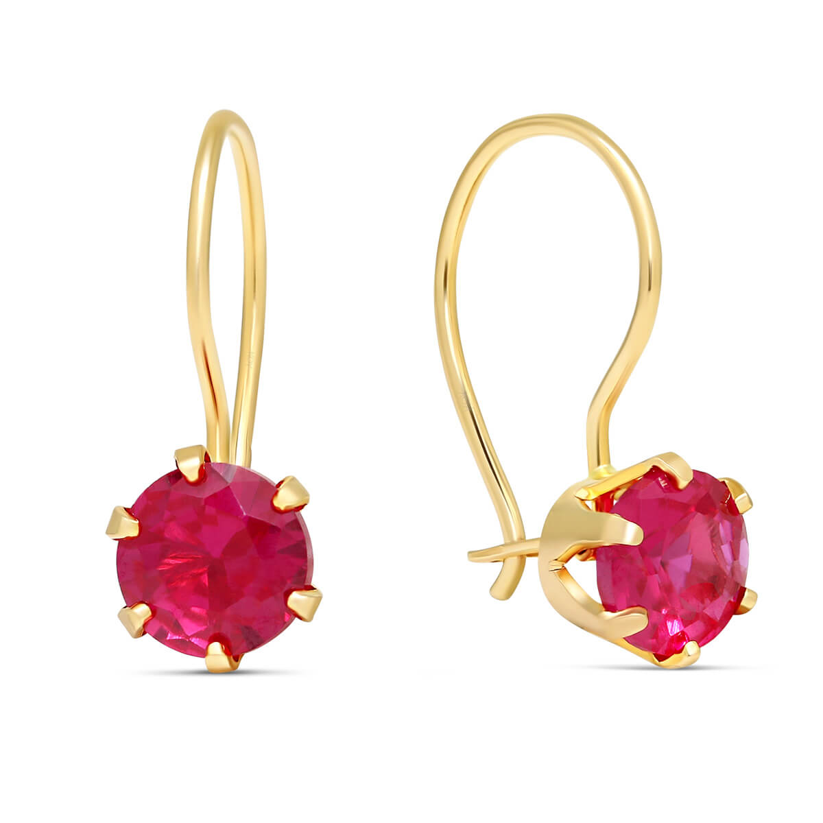 Keltakultaiset roikkuvat kultakorvakorut punaisilla zirkonia-korukivillä. Korvakorun koko on 5 x 15 mm. Valmistusmateriaali on laadukas 14 karaatin keltakulta. Koukkukiinnitys.