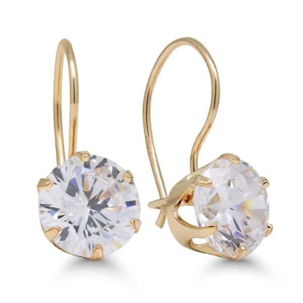 Keltakultaiset roikkuvat kultakorvakorut pyöreillä kirkkailla zirkonia-korukivillä. Korvakorun koko on 7 x 17 mm. Valmistusmateriaali on laadukas 14 karaatin keltakulta. Korvakoruissa on kätevä lukollinen koukkukiinnitys.