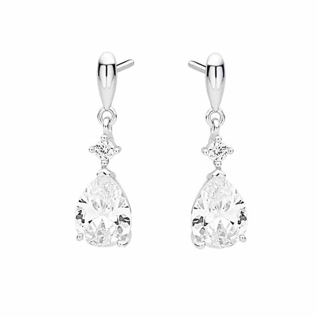 Pisaranmuotoiset hopeakorvakorut Roikkuvat hopeiset pisara-korvakorut kirkkailla zirkoni-korukivillä. Näiden upeiden roikkuvien pisarakorvakorujen koko on 24 x 7 mm ja niissä on luotettava... Lue lisää