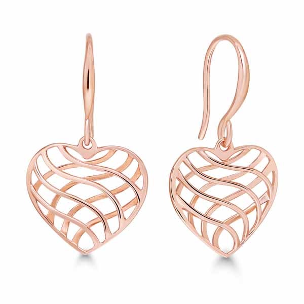 Hopeiset punakullatut roikkuvat korvakorut sydämen muodossa. Sydänkorvakorun koko on 16 x 15 mm. Korvakoruissa on koukkukiinnitys. Valmistusmateriaali on nikkelitön 925 sterling-hopea.