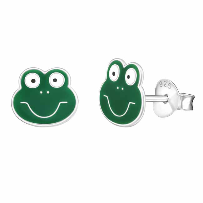 Lasten sammakko-hopeakorvakorut. Suloiset lasten hopeiset sammakko-korvakorut. Korvakoruissa on luotettava tappikiinnitys. Korvakorujen koko on 9 x 7 mm. Sirot ja kevyet nappikorvakorut, joita lapsi voi käyttää arjessa!