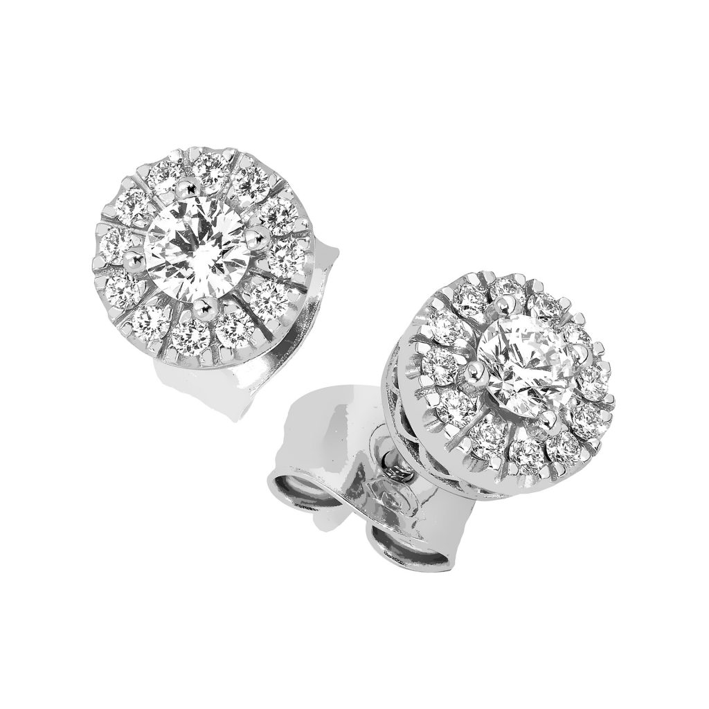 Korvakorujen keskitimantteina on 2 kpl 0,14 ct briljanttihiontaisia timantteja. Halokehyksen timanttien yhteispaino korvakoruparissa on 0,16 ct. Korvakorujen halkaisija on noin 7 mm. Korvakorut ovat saatavissa myös kelta- tai punakultaisina.