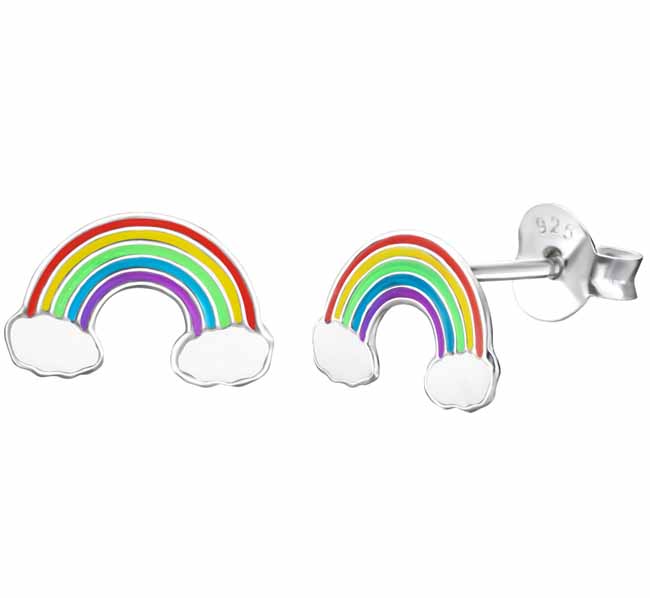 Lasten iloiset sateenkaari-hopeakorvakorut. Suloiset lasten hopeiset sateenkaari-korvakorut. Korvakoruissa on luotettava tappikiinnitys. Korvakorujen koko on 11 x 7 mm. Sirot ja kevyet nappikorvakorut, joita lapsi voi käyttää arjessa!