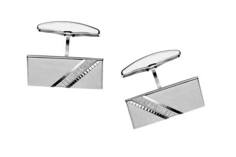 Näissä kotimaisissa hopeisissa kalvosinnapeissa on valoa kauniisti heijastava kuviointi. Kalvosinnapin koko on 21 x 10 mm. Kalvosinnappien taakse mahtuu kaiverrus.