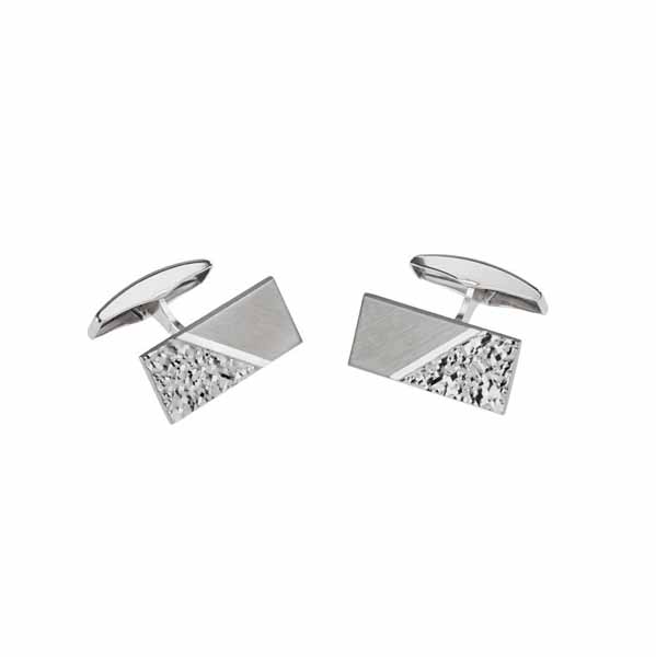 Kotimaiset Saurum kalvosinnapit. Miesten hopeiset kalvosinnapit tyylikkäällä kuvioinnilla. Kalvosinnapin pinta on osin sileä, osin rosoinen. Kalvosinnapin koko on 21 x 10 mm. Kalvosinnapit on valmistettu laadukkaasta nikkelittömästä sterling-hopeasta eli 925-hopeasta.
