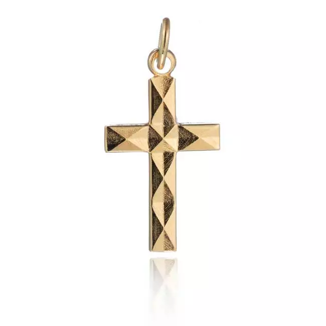 14 karaatin keltakullasta valmistettu kultaristi geometrisellä kuvioinnilla. Ristin korkeus on 20 mm ja leveys 12 mm. Tämän ristiriipuksen mukana ei tule ketjua.