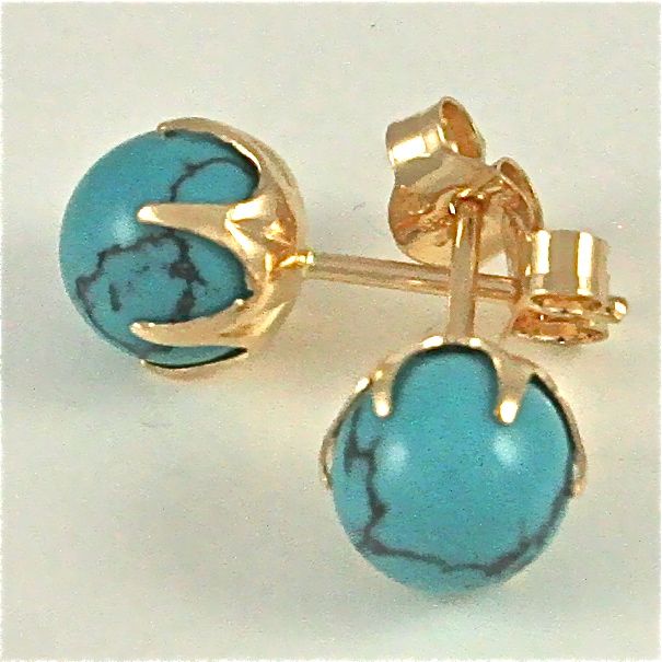 Turkoosi Kultakorvakorut Materiaali: 14K keltakulta Kivi: Turkoosi, halkaisija 6 mm Koruosan koko: 6 mm Tappikiinnitys Valmistaja: Suomen Korutuonti