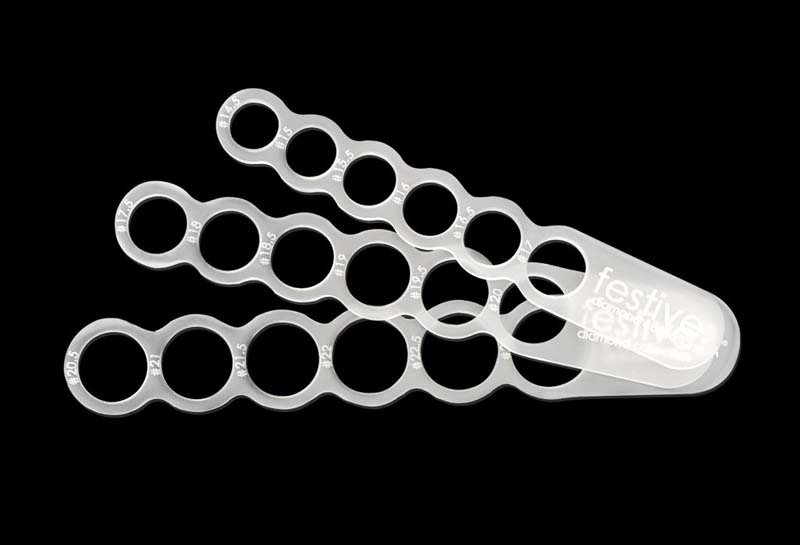 Kätevä apuväline oikean sormuskoon mittaamiseen.