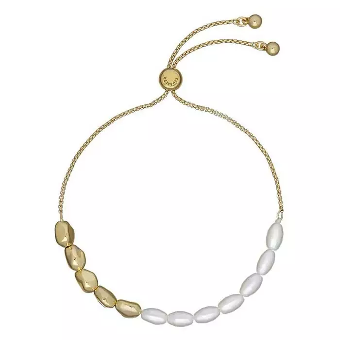Naisten Ted Baker helmirannekoru. Kaunis naisten kullan sävyinen rannekoru synteettisillä valkoisilla helmillä.