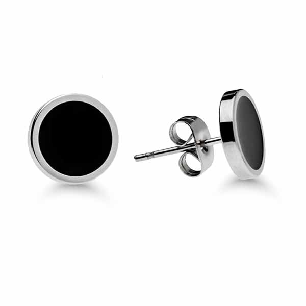 Teräksiset pyöreän muotoiset korvakorut mustalla värillä. Korvakorujen koko on 10 mm ja niissä on tukeva tappikiinnitys. Korvakorut on valmistettu kestävästä ruostumattomasta teräksestä.