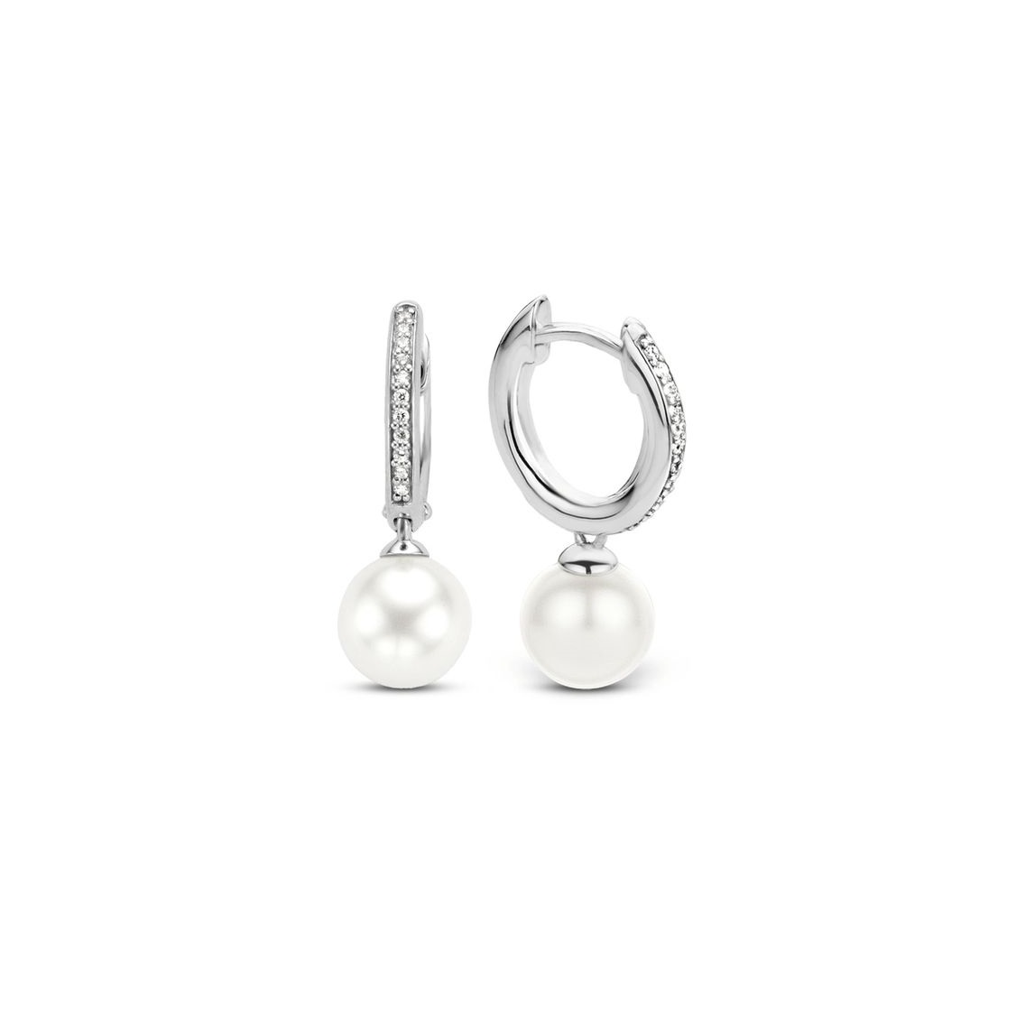 Ti Sento hopeiset korvarenkaat helmellä 7696PW