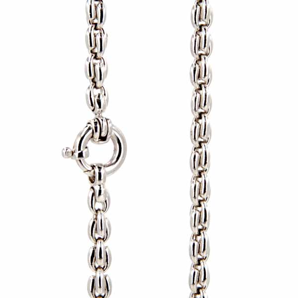 Valkokultainen kaulaketju, joka koostuu soikean muotoisista valkokultalenkeistä. Kultaketjun pituus on 45 cm. Ketjun leveys on noin 5,5 mm. Valmistettu 14K valkokullasta.