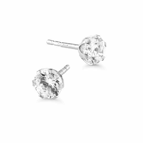 Kauniit kultakorvakorut synteettisellä zirkonilla. Korvakorut ovat 14k valkokultaa.