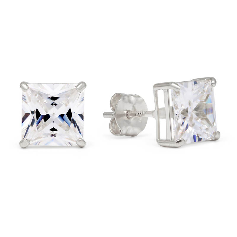 Valkokultaiset korvakorut neliönmuotoisella zirkonialla. Valmistusmateriaali 14 karaatin valkokulta.