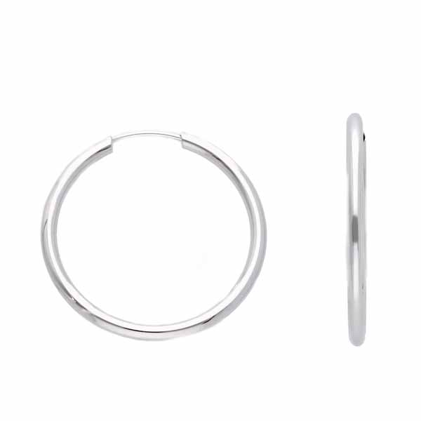 Valkokultaiset korvarenkaat kauniilla kiiltävällä pinnalla. Renkaan halkaisija on 22 mm ja leveys 1,6 mm. Materiaali on 9 karaatin valkokulta. Korvakoruissa on putkikiinnitys.