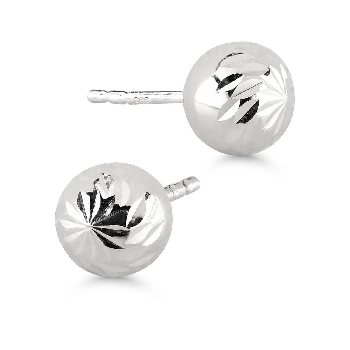 Klassiset valkokultakorvakorut pallon muodossa. Korvakoruissa on kauniisti valoa heijastava timanttileikkauskuviointi. Valmistusmateriaali on laadukas 14 karaatin valkokulta.