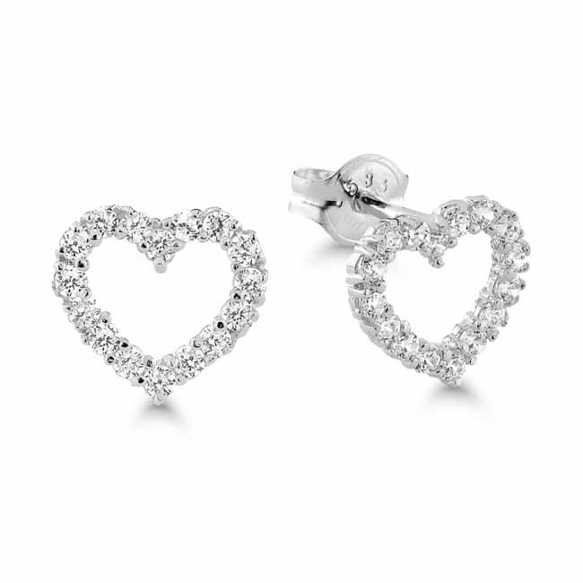 Naisten avosydämen muotoiset valkokultakorvakorut zirkonia-korukivillä. Nappikorvakorujen koko on 7 mm. Klassiset valkokultaiset sydänkorvakorut, jotka sopivat moneen tilanteeseen!