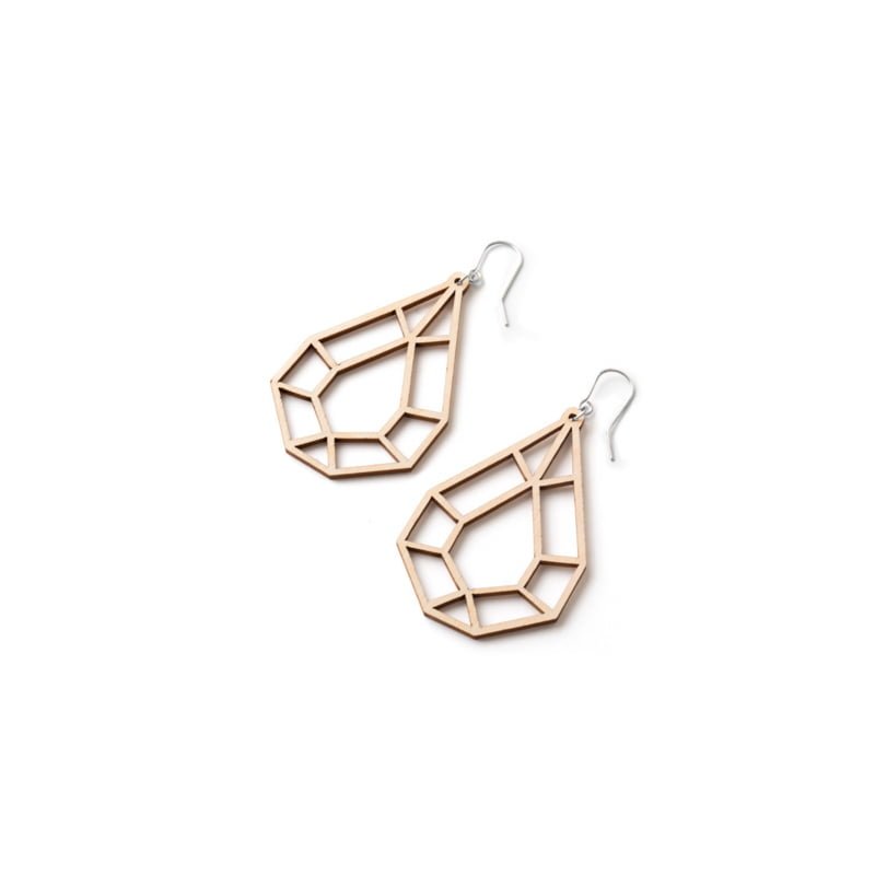 Koivuvanerista valmistetut puukorvakorut. Koruissa on koukkukiinnitys ja koukun materiaali on hopea. Koukuissa on mukana silikonitaustat joiden avulla korut pysyvät paremmin paikoillaan. Korvakorujen koruaiheena on kaunis geometrinen pisaran muoto. Koruosan koko on 3,5 x 2 cm. Nämä korut on saatavilla neljässä ihanassa värissä; puu, musta, sininen ja punainen.